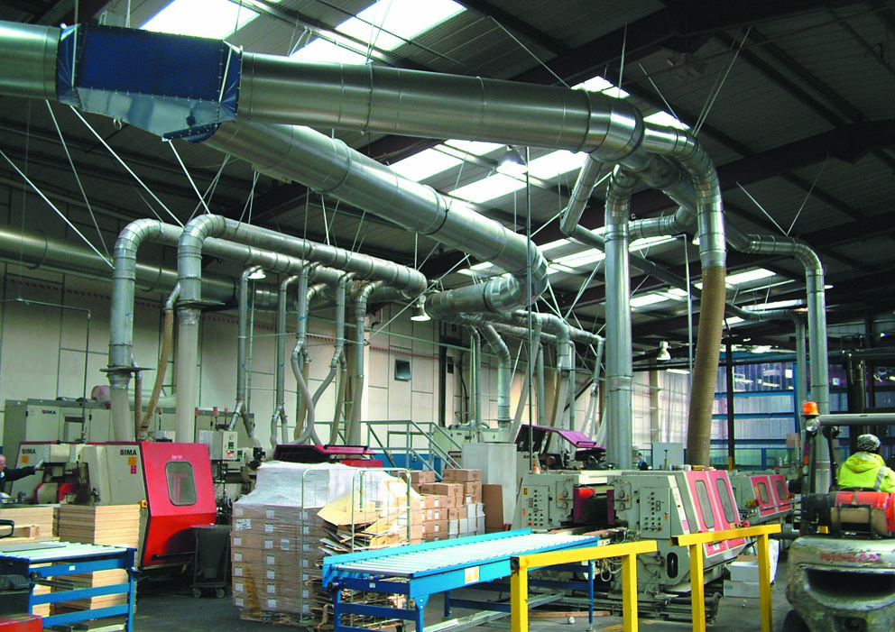 As part of a move to further automate panel processing at their Hull based manufacturing centre, leading raised access flooring manufacturer, Kingspan Access Floors Ltd., decided to relocate a complete edge-banding line from one side of the factory to the other, bringing two processing lines together. The plan was to complete the task over Christmas shut-down and have the two lines fully operational in time for the first day back after the holiday. Apart from all the logistical problems associated with physically moving all the machines in the line, there was also the need to have an effective dust extraction system installed and fully working from day one.